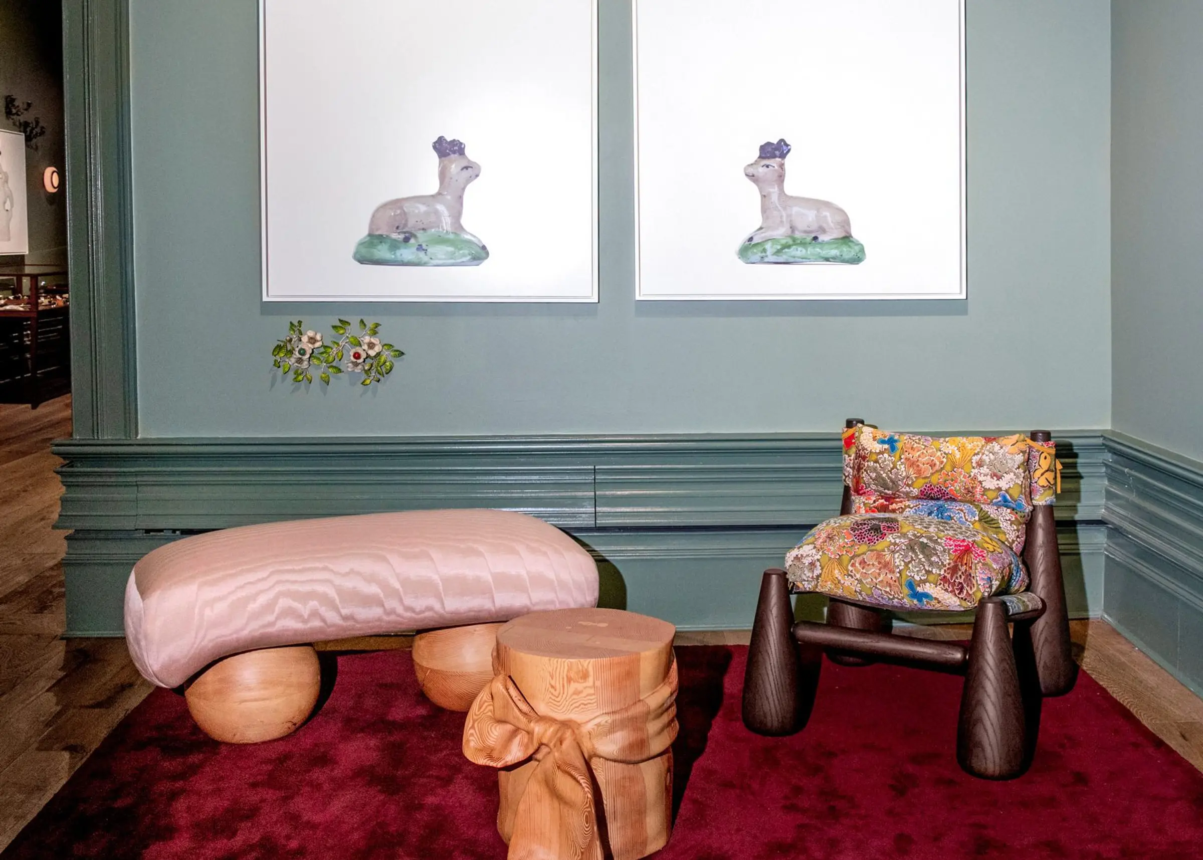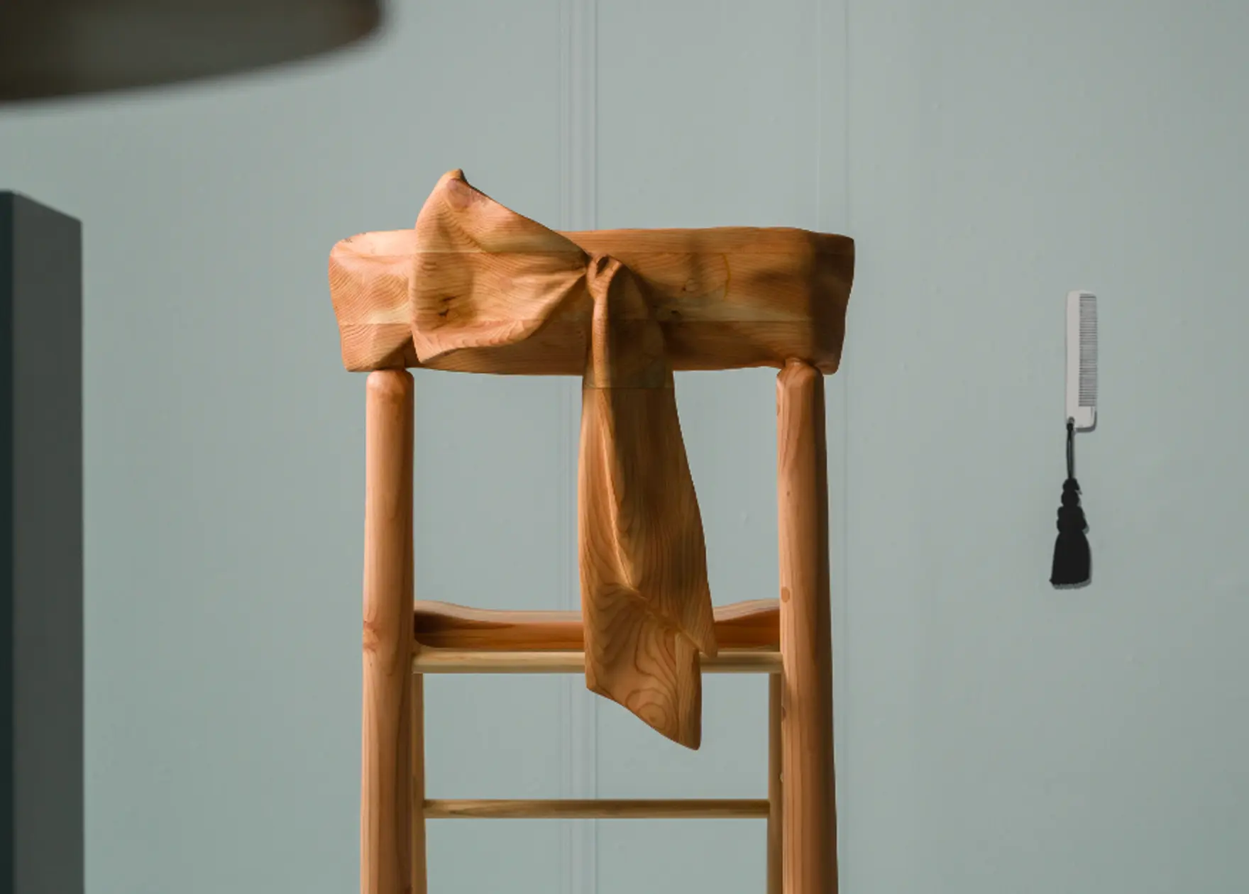 A bow dons the back of this dining chair in a celebration of excessive joy and whimsy. Designer Sam Klemick pushes wood to look draped and molded like garments.