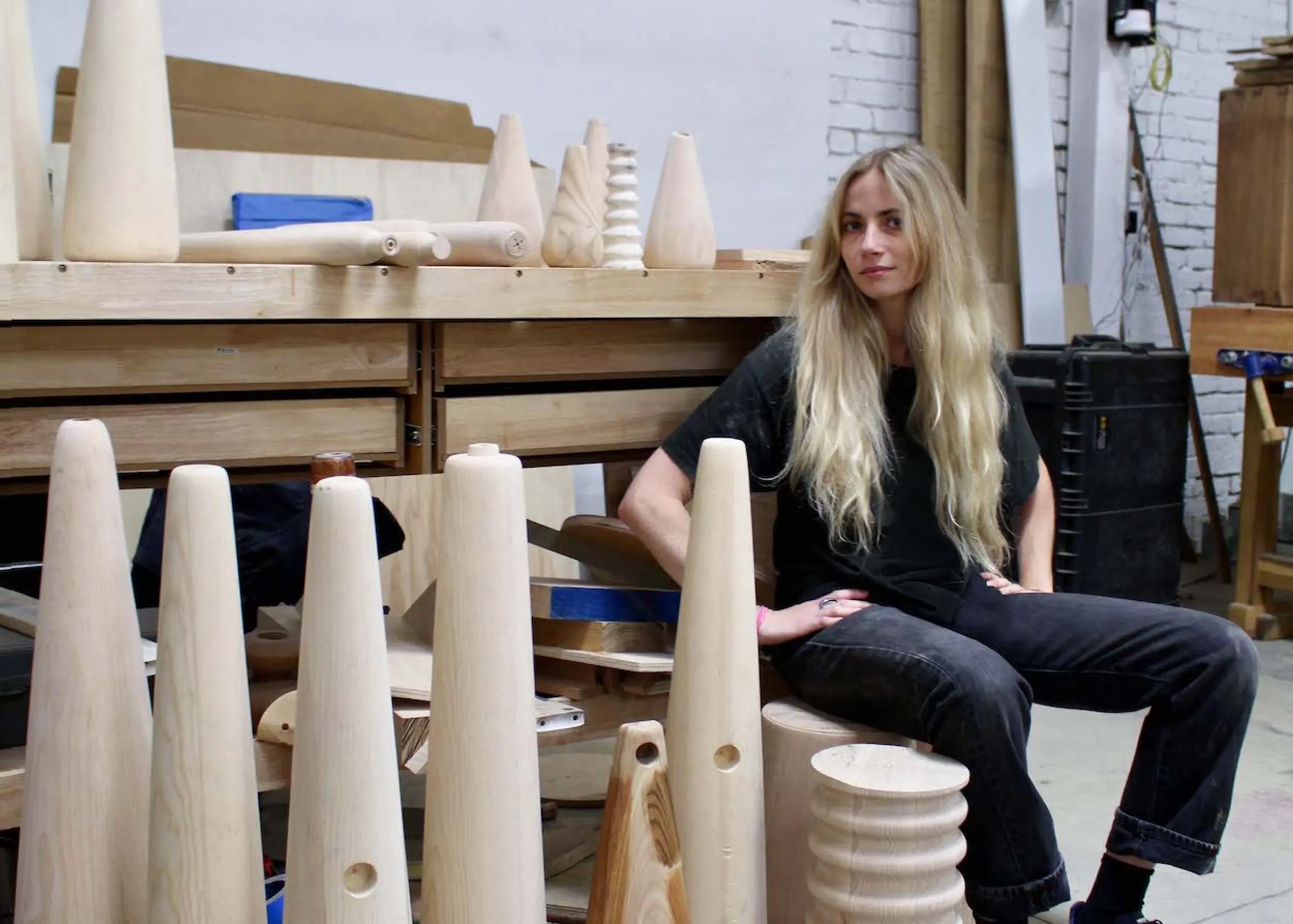 Klemick handcrafts pieces in her L.A. workshop from salvaged and locally sourced lumber using the circular method.