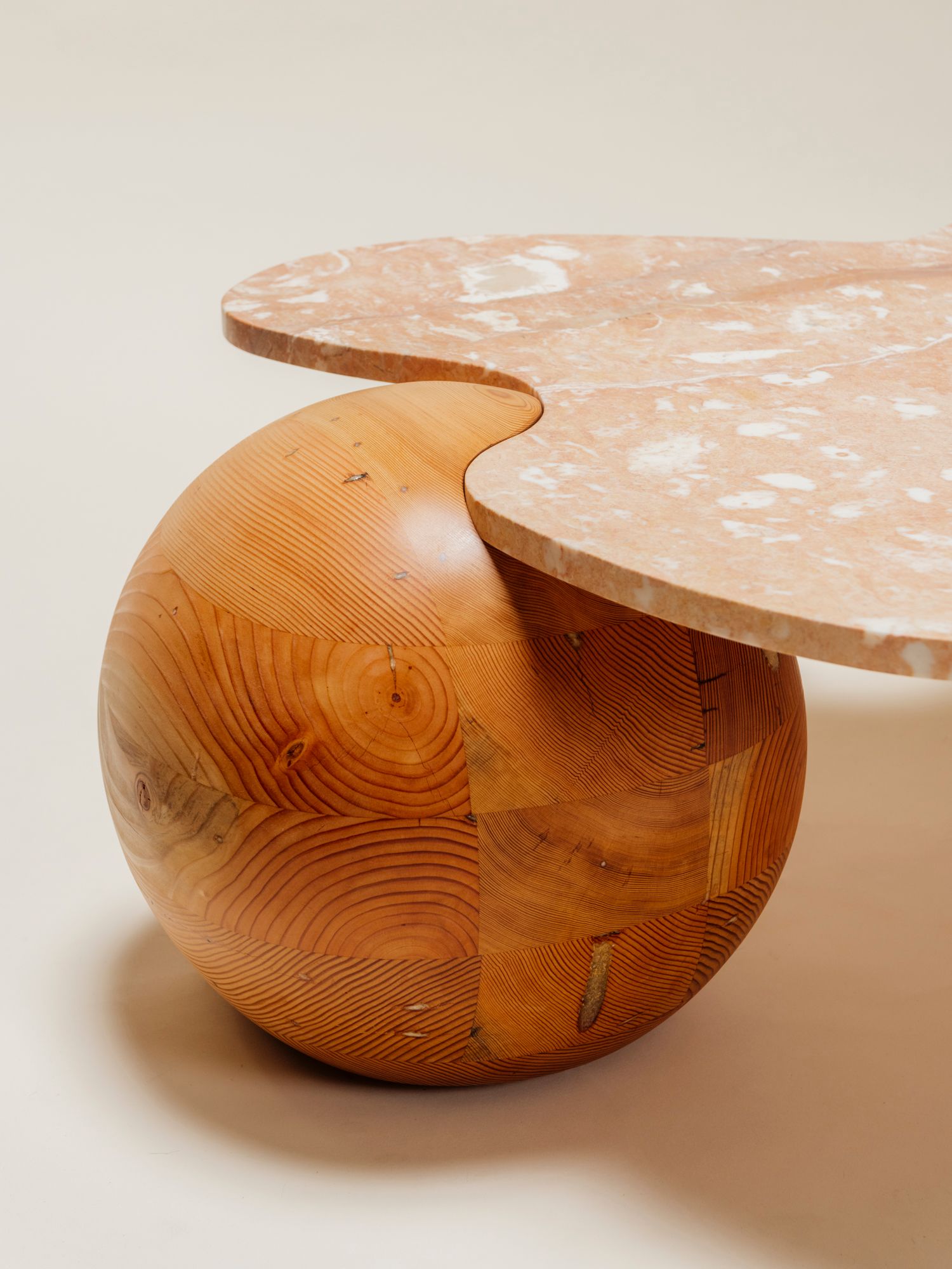 - In natural wood with a rose marble top