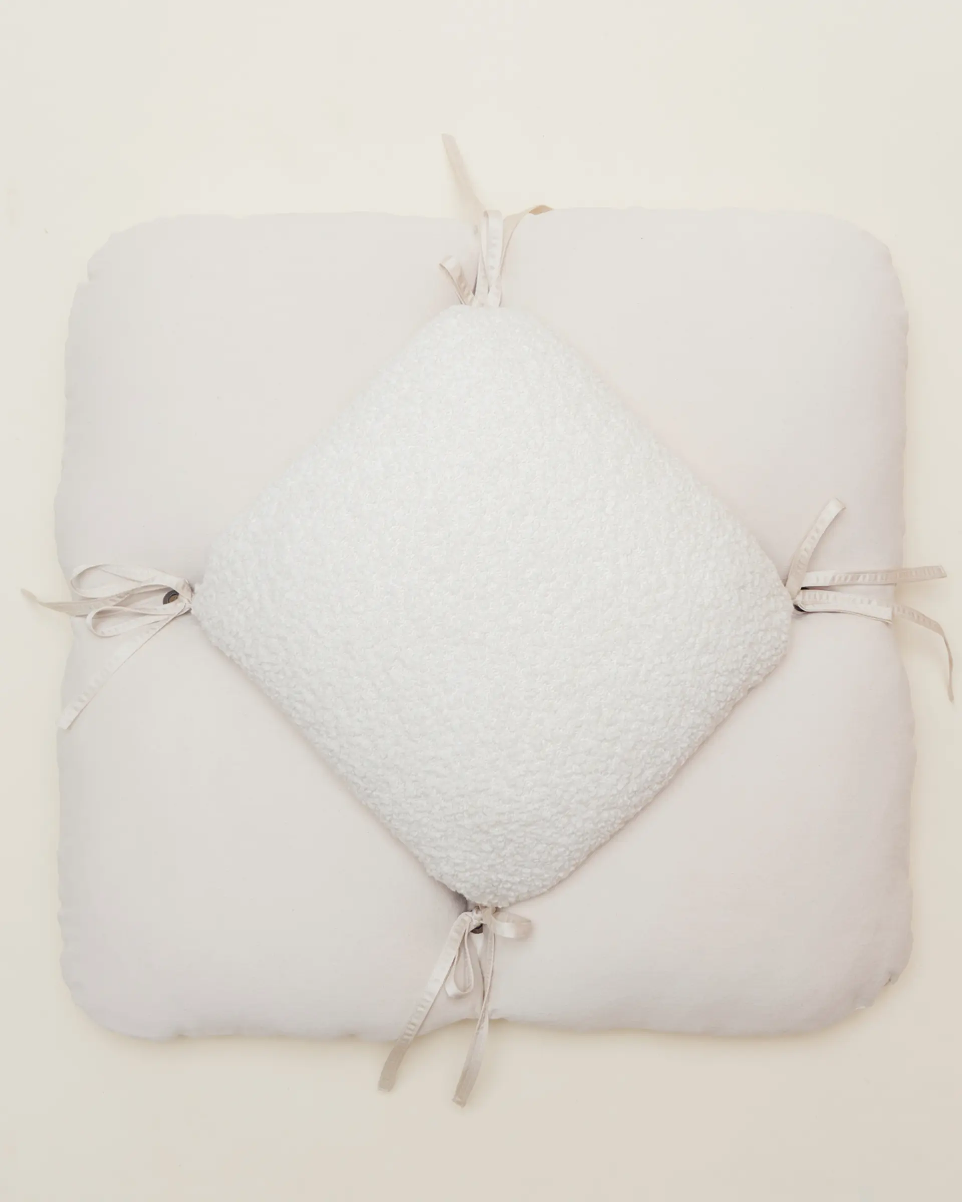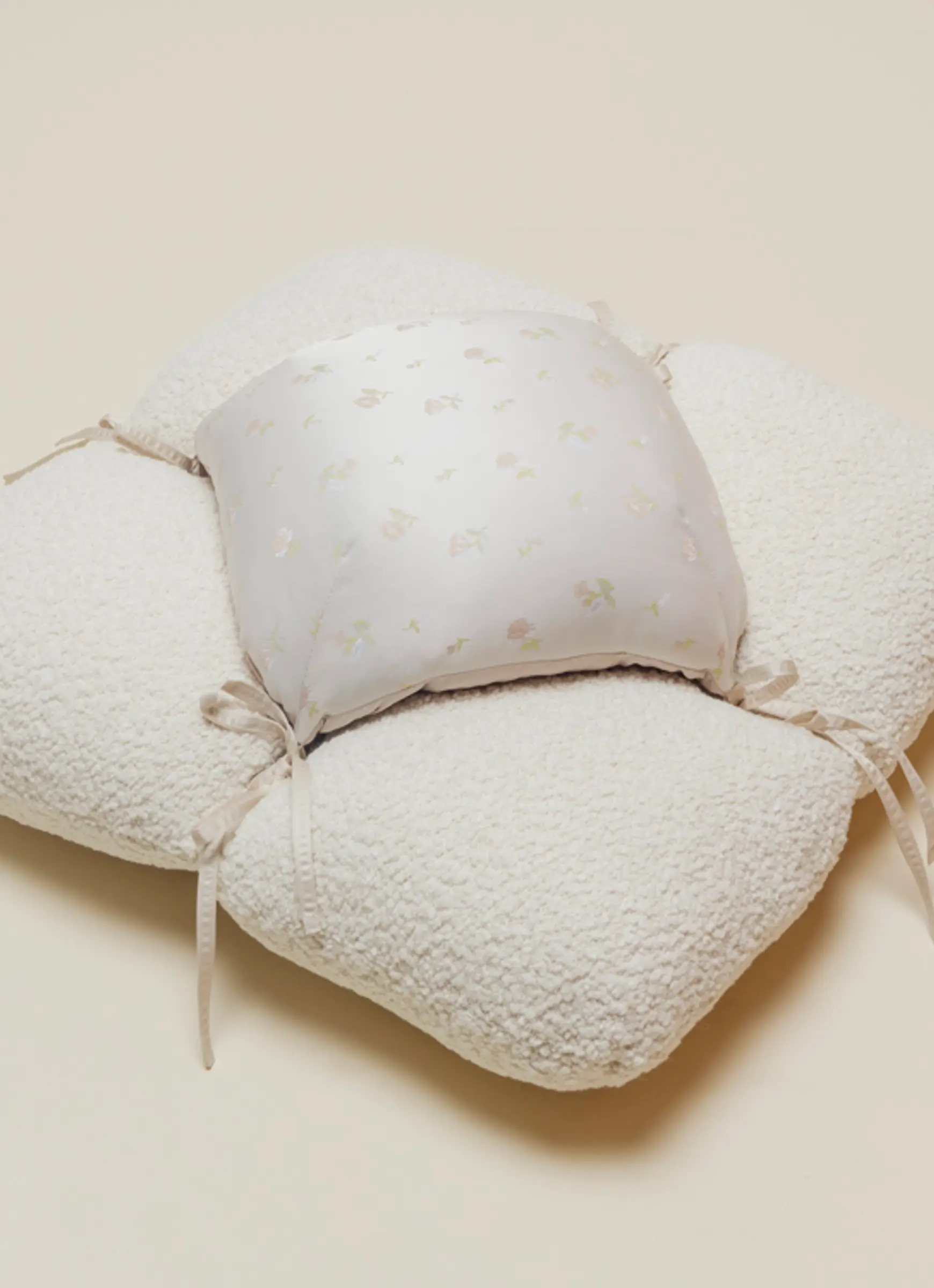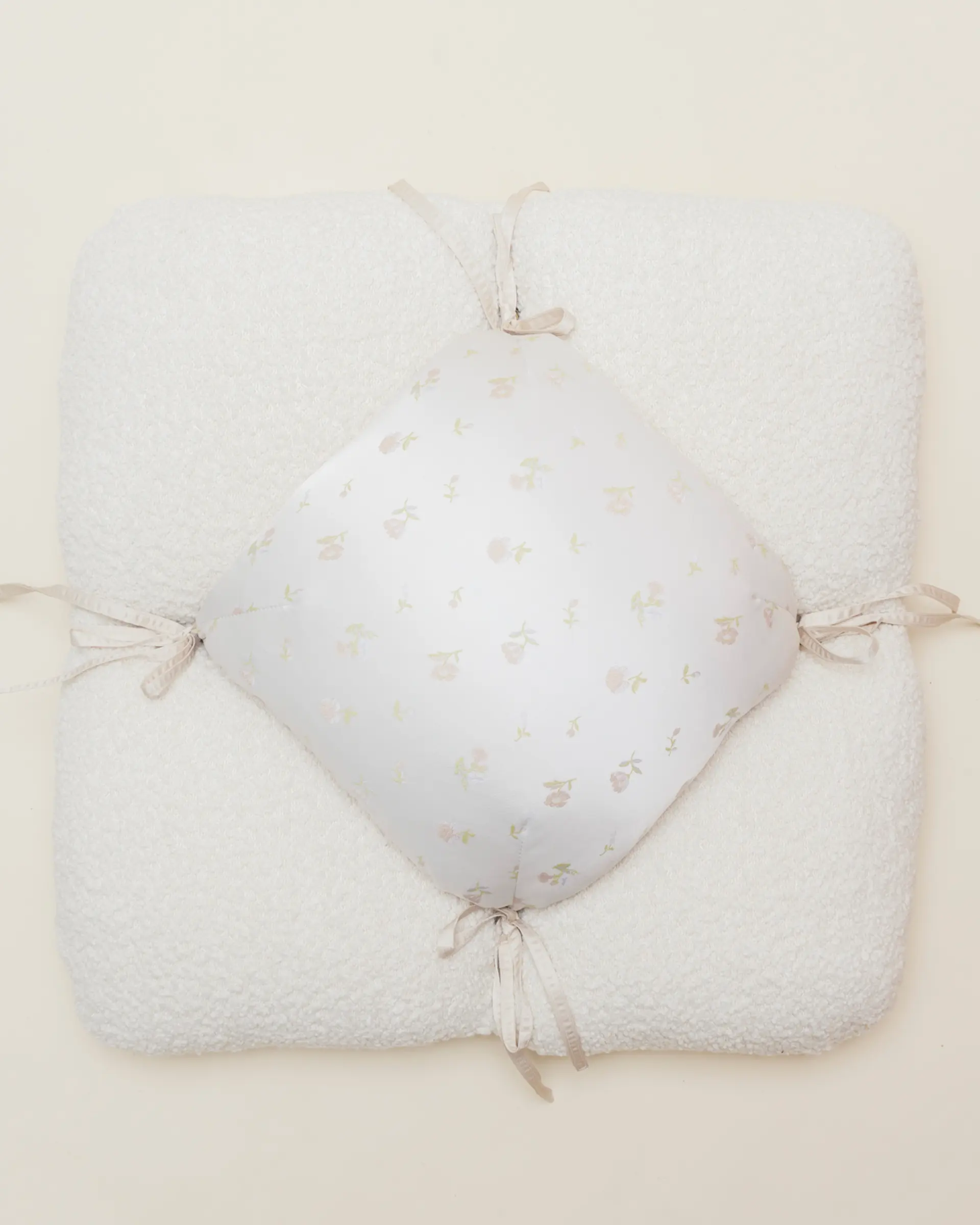 - Pictured with ivory boucle base and ditsy floral tie pillow